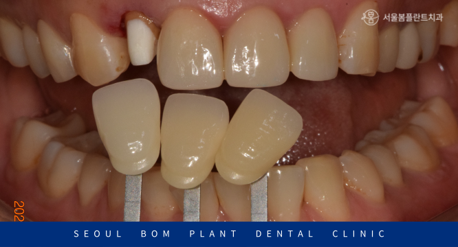 Shade guide를 이용하여 색조를 선정하였습니다.